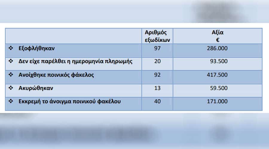 16,854 εξώδικα στο δικαστήριο – Ανοίχθηκε ποινικός φάκελος και εκκρεμεί η εκδίκαση της υπόθεσης.