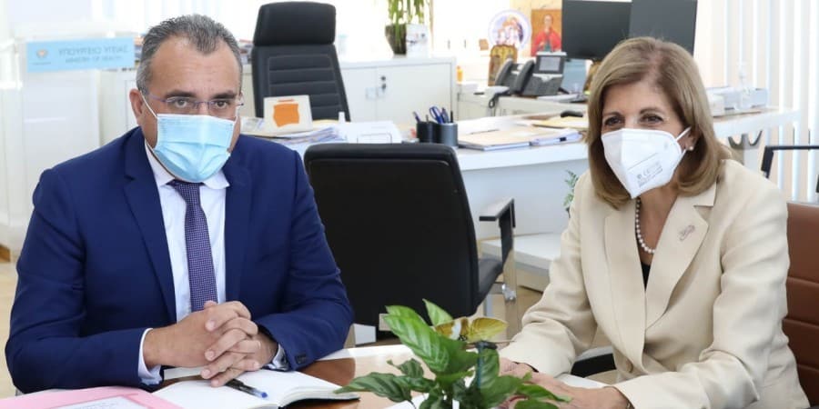 Κατά τη διάρκεια της συνάντησης, ο Υπουργός Υγείας και Επίτροπος Υγείας ενημερώθηκαν και αντάλλαξαν απόψεις για τα έργα που είναι σε εξέλιξη σε σχέση με την ανέγερση του νέου Κέντρου Ψυχικής Υγείας και της Θεραπευτικής Μονάδας Εξαρτημένων Ατόμων στη Λευκωσία, ενώ εξέτασαν τα τελευταία επιδημιολογικά δεδομένα τόσο σε σχέση με τη νόσο COVID-19 όσο και τα περιστατικά ευλογιάς των πιθήκων στην ΕΕ. Εξετάστηκαν επίσης οι επιπτώσεις στον τομέα της Υγείας από τη συνεχιζόμενη ρωσική εισβολή στην Ουκρανία . Ο Υπουργός Υγείας ενημέρωσε την Επίτροπο πως η Κύπρος μέχρι στιγμής προσέφερε σε 500 πρόσφυγες εξωνοσοκομειακής φροντίδα υγείας και σε 42 πρόσφυγες υπηρεσίες ενδονοσοκομειακής φροντίδας.
