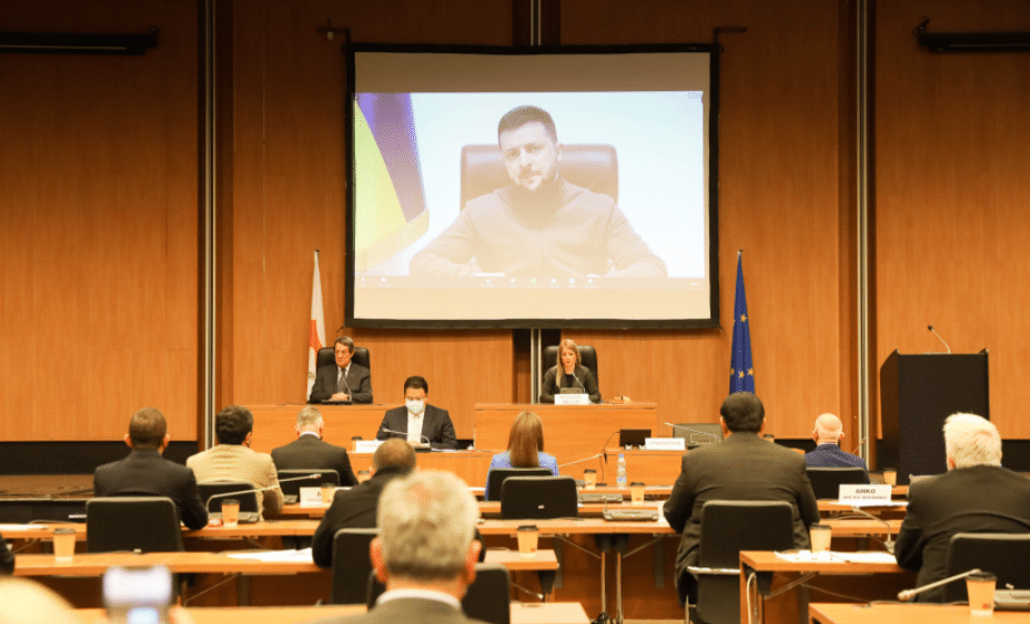 Σε τεχνικό λάθος αποδίδεται η διακοπή της σύνδεσης με τον Ουκρανό Πρόεδρο, ο οποίος το απόγευμα της Πέμπτης απευθύνθηκε στα μέλη της Βουλής των Αντιπροσώπων της Κύπρου. Η Πρόεδρος της Βουλής Αννίτα Δημητρίου καλωσόρισε τον Β. Ζελένσκι, ο οποίος μίλησε ενώπιον του κυπριακού κοινοβουλίου.