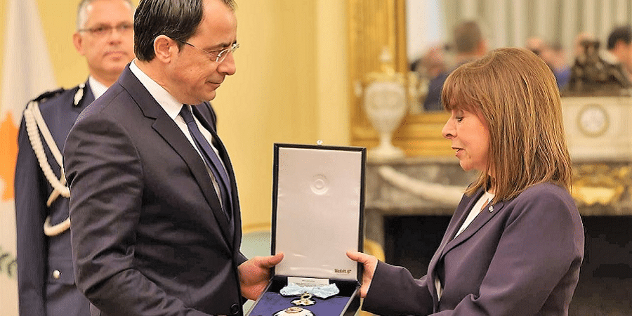 Το Κυπριακό είναι διαρκές μέλημα και κορυφαία εθνική προτεραιότητα της εξωτερικής πολιτικής Ελλάδας», είπε η Πρόεδρος Σακελλαροπούλου, σημειώνοντας ότι εγγύηση της αποτελεσματικότητας των προσπαθειών αυτών είναι η στενή συνεργασία και ο συντονισμός σε διμερές, πολυμερές και περιφερειακό επίπεδο, κάτι που έχει καταστήσει την Ελλάδα και την Κύπρο πυλώνες σταθερότητας και ασφάλειας στην Ανατολική Μεσόγειο.