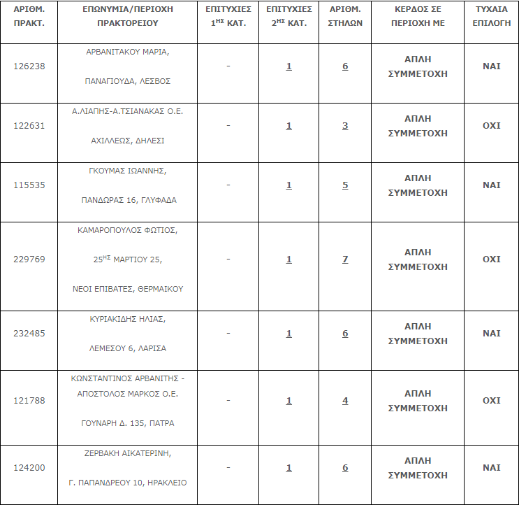 Ήταν όλα δελτία με απλή συμμετοχή και ορισμένα από αυτά δελτία τυχαίας επιλογής.