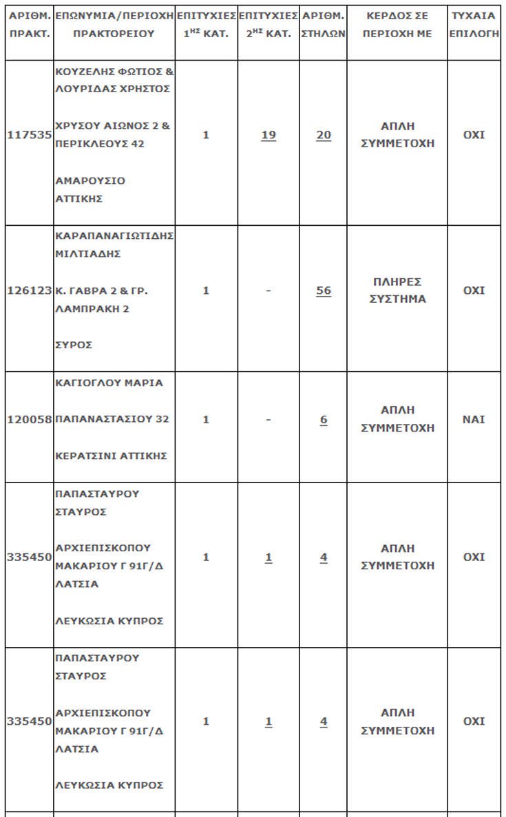 Επίσης, 56 τυχερά δελτία βρέθηκαν στην 2η κατηγορία 5, τα οποία κερδίζουν το ποσό των 4.886,30 ευρώ έκαστο.
