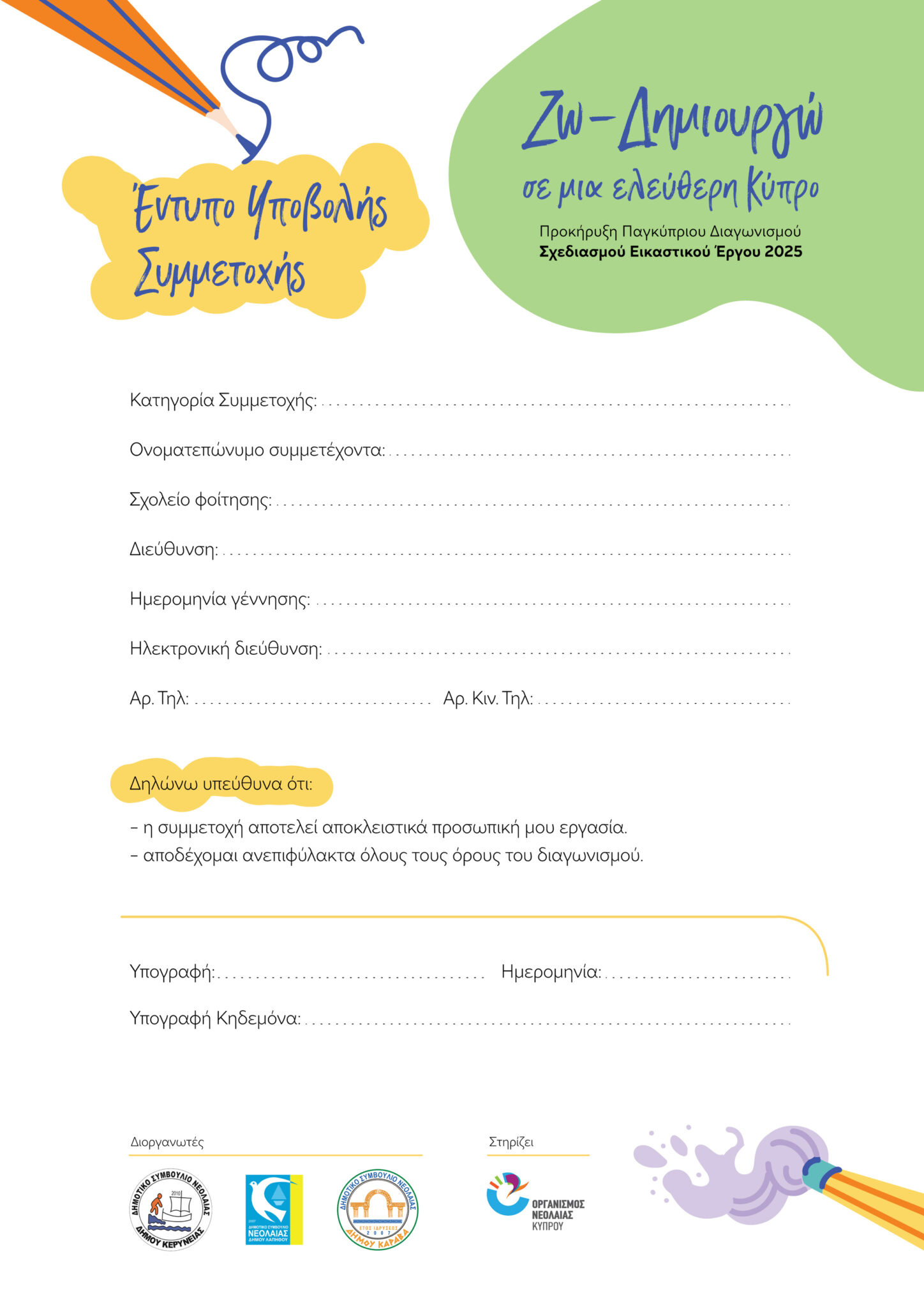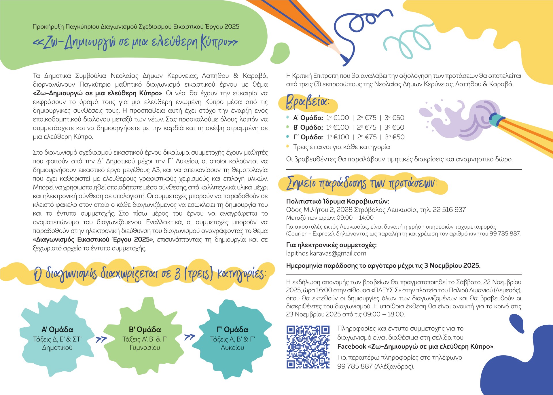 Προκήρυξη Παγκύπριου Διαγωνισμού Σχεδιασμού Αφίσας 2025 « Ζω – Δημιουργώ σε μια Ελεύθερη Κύπρο »