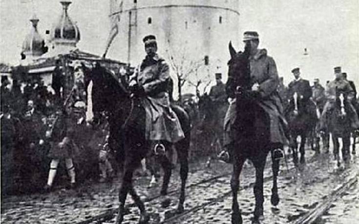1912: Ο Ελληνικός Στρατός, υπό τον αρχιστράτηγο διάδοχο Κωνσταντίνο, εισέρχεται απελευθερωτής και νικηφόρος στην Θεσσαλονίκη, γενόμενος ενθουσιωδώς δεκτός από τους Έλληνες κατοίκους. Ολόκληρη η τουρκική φρουρά από 25.000 οπλίτες, 1.000 αξιωματικούς, 1.200 ίππους και 70 πυροβόλα, υπό τον Χασάν Ταξίν Πασά, παραδίδεται άνευ όρων. Την ίδια μέρα, η Ταξιαρχία Ιππικού, μετά από αγώνα, εισέρχεται και απελευθερώνει τον Λαγκαδά, ενώ οι Σέρβοι καταλαμβάνουν τα Σκόπια.
