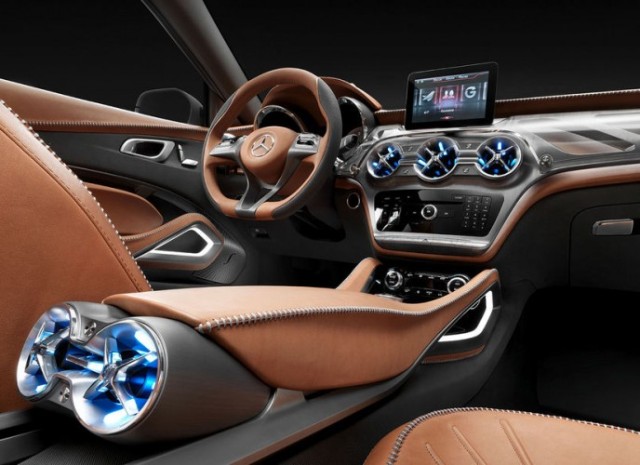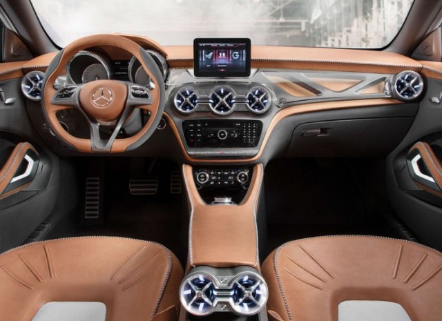 Σε ύψος το Concept GLA είναι μόλις 2 cm πιο υψηλό από τη B-Class και 15 cm από την A-Class. To εντυπωσιακό compact crossover διαθέτει δυναμική εμφάνιση, led φώτα στην οροφή, τροχούς 20 ιντσών και όλα τα σύγχρονα σχεδιαστικά στοιχεία των μικρών Mercedes.