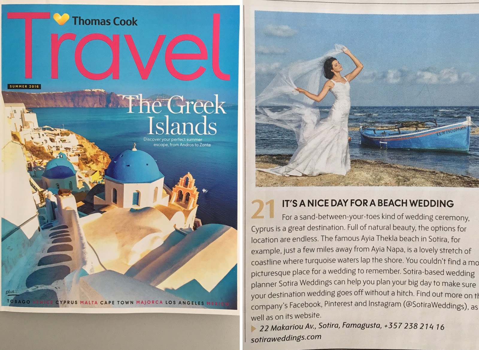 Στην έκδοση “Καλοκαίρι 2016” του περιοδικού “Travel” ο ταξιδιωτικός κολοσσός των 310 εκατομμυρίων ευρώ ετησίως και των 22 χιλιάδων υπαλλήλων προτείνει την Σωτήρα ως τον ιδανικότερο προορισμό για τέλεση γαμήλιων τελετών.