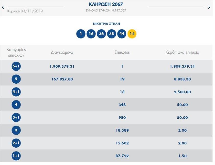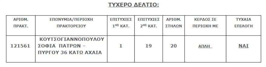Το συγκεκριμένο δελτίο δεν περιελάμβανε μόνο τους 5+1 αριθμούς της πρώτης κατηγορίας αλλά είχε και δεκαεννιά (19) επιτυχίες στη δεύτερη κατηγορία (5) όπου η κάθε επιτυχία κερδίζει από 8.838,30 ευρώ.