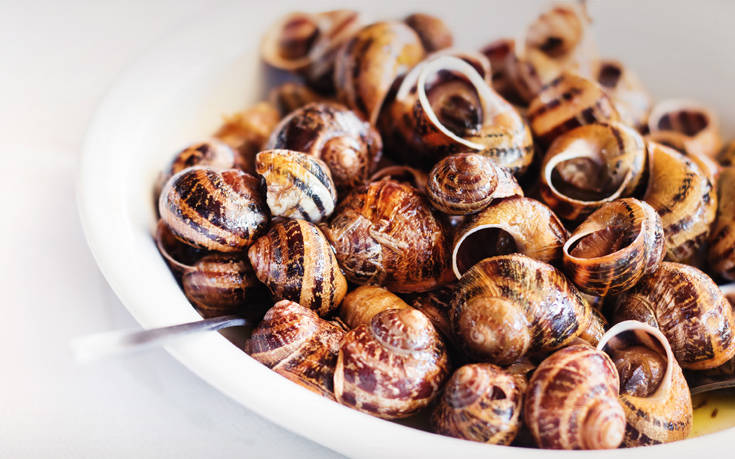 1. Ρίχνουμε τους χοχλιούς σε μία λεκάνη με νερό και τους αφήνουμε μέσα μέχρι να βγάλουν έξω τα κεφάλια τους, τους ξεχωρίζουμε εάν έχουν κολλήσει μεταξύ τους.
