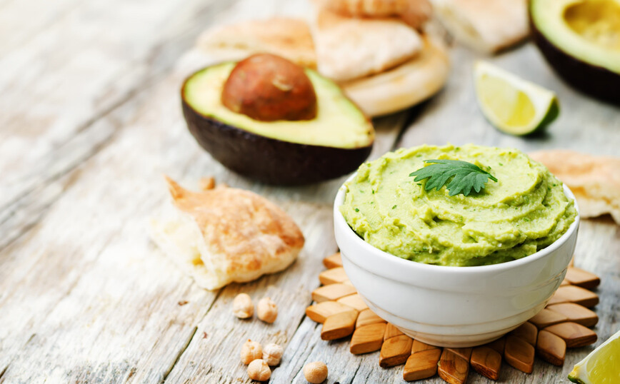 Τοποθετήστε τα ρεβύθια, το αβοκάντο, το σκόρδο, το χυμό λάιμ, το κύμινο, το αλάτι και το πιπέρι σε έναν επεξεργαστή τροφίμων και ανακατέψτε μέχρι να αποκτήσετε έναν πουρέ με μαλακή υφή.