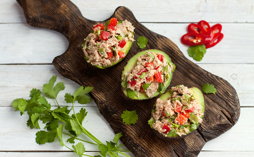 Με ένα κουτάλι γεμίστε τα άδεια κελύφη του αβοκάντο και απολαύστε.