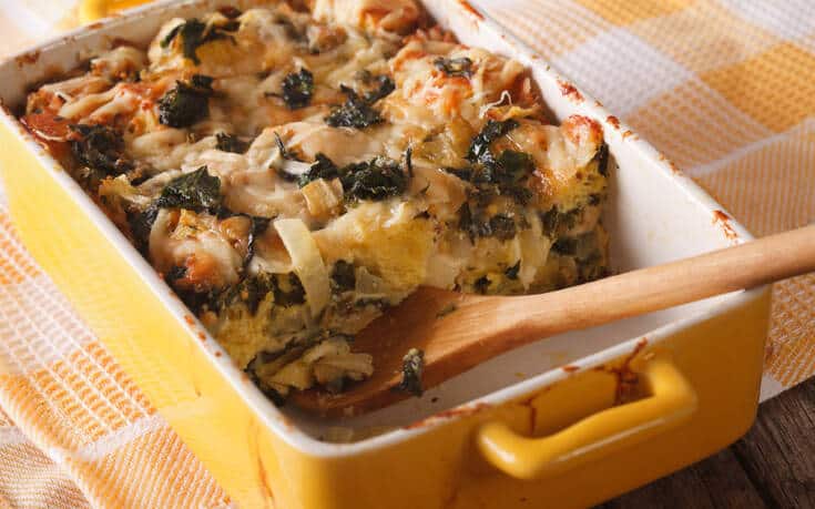4. Τοποθετήστε από πάνω μια στρώση με σπανάκι, καλύψτε πάλι με ψωμί και τελειώστε με ακόμη μία στρώση σπανάκι.