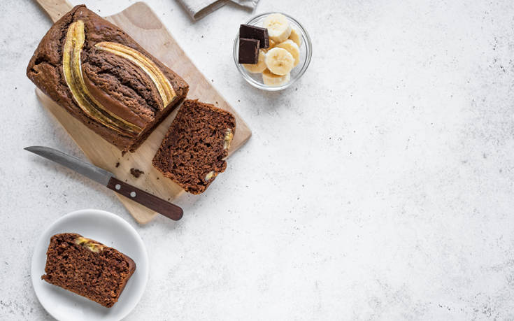 4. Διπλώνετε με μια σπάτουλα τη σοκολάτα και το πουρέ μπανάνας και ρίχνετε στη φόρμα.