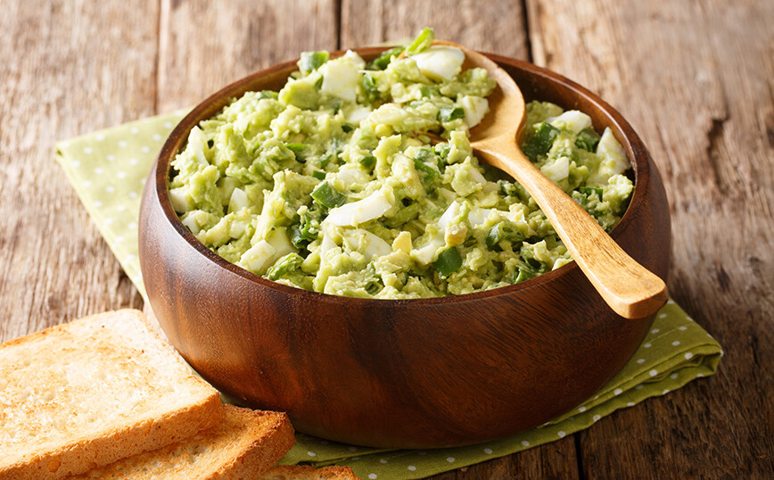 Τοποθετήστε το αβοκάντο και τα αβγά σε ένα μπολ και ανακατέψτε.