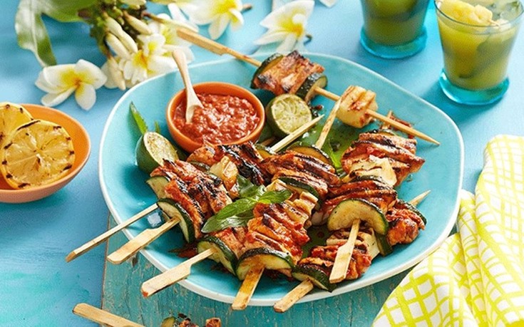 Σουβλάκια με χαλούμι και κολοκυθάκια