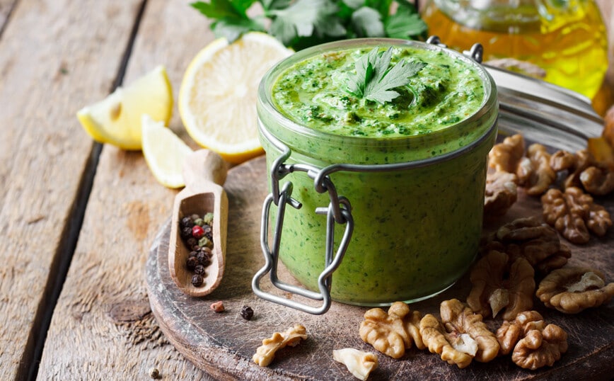Ανακατέψτε μέχρι να αποκτήσετε μια λεία πάστα και, στη συνέχεια, προσθέστε τις τελευταίες 2 κουταλιές της σούπας ελαιόλαδου.