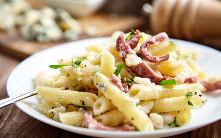 Ζυμαρικά με κρέμα γάλακτος και καπνιστό λουκάνικο